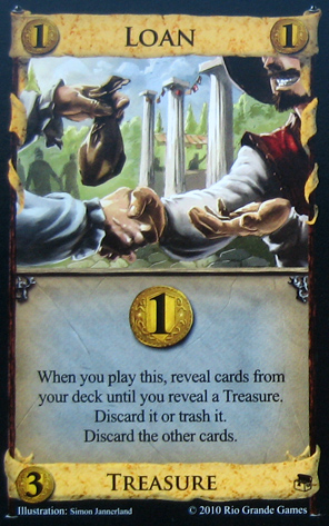 An old combo, but rereading this and it occurred to me that Minion/Loan has some real problems, in that Loan can slow you to getting to $5, and can often have trouble clearing the last few coppers, if you draw it in them in the same hand as Loan.