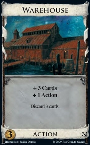 One of the easiest ways to shut down someone relying on Warehouses is to play Militia (or any other handsize-lowering attack like Goons or Torturer).  Militia punishes every card that depends on a large hand size (Vault, Forge, Bank), but most of all an opponent that depends on Warehouse’s draw-and-discard ability to get through his deck.  Warehouses are increasingly ineffective as your hand size decreases, and after Militia, are often more of a liability than a benefit.  Drawing 3 Golds just to discard them is like playing Rabble on yourself.