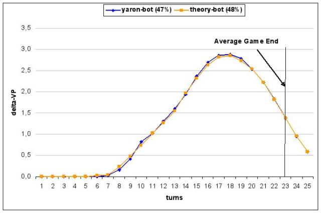 I would recommend adding what delta-VP means to the graphs (change in VP per turn). I spent some time understanding how how the lower line in the first graph was winning by so much. Until of course I went back to the previous post that has the same style graphs, but have a note of that the axis means.