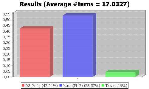 The simulations do end up in Duchie-dancing quite often which lets the average game length go up a lot, but when you don’t allow that behaviour, the win rate drops!