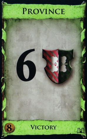 ProvinceWhen do you start buying Provinces?  Generally, as soon as possible.  There are exceptions: if your Lab engine is set up and you’re drawing $10 with multiple buys every turn, you might want to take a second to get a Gold, so that you can be drawing $13 every turn, which is far more helpful because then you can go Province/Lab every turn.  Alternatively, maybe you want to push for $16 and gun for a double Province turn or two.  It all depends on how fast your opponent’s deck is going: watch his tempo, and don’t get caught with your pants down and too few Provinces remaining.