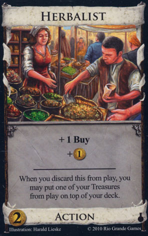The Herbalist will always give you an extra buy so if you can’t buy an extra Herbalist, buy a Copper! Yes, they will bloat your deck, yes that’s exactly what you want.