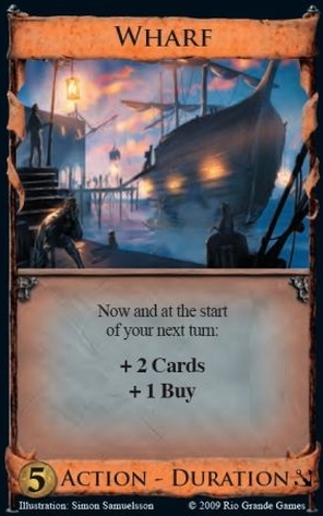 Wharf is my absolute favorite card, but I’ve won games because I spent my 5 on a Smithy, while my opponent spends his 5 on a fifth Wharf. The truth is, once you get a high enough starting hand density, Wharves aren’t nearly as useful as just having other combo pieces. They’re expensive – not only do they cost 5, but they can’t be played every turn.