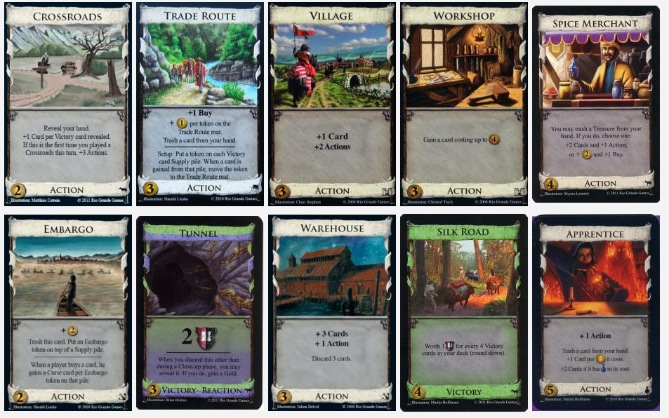 So we would highly recommend all of them if you’re looking to try a custom set game. Each offers enough depth to be played multiple times without identifying any obviously optimal approach. You can see all the finalists here, or on DominionDeck.com.