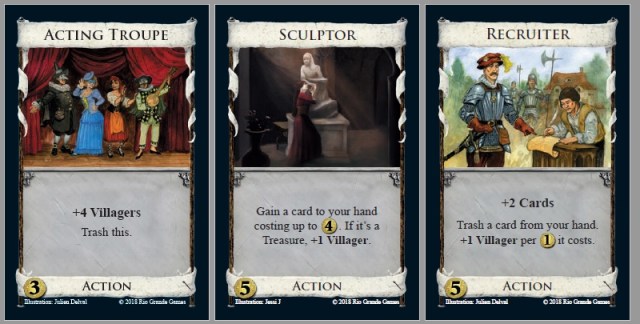 Sculptor is that rare animal, a Workshop that gains cards directly to your hand. Watch out. If you gain an Action you won’t necessarily be able to play it that turn… but wait, you might have Villagers from previous plays of Sculptor. They thought of everything.