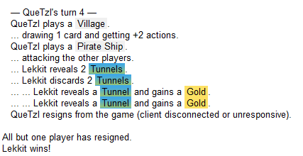 In a mirror matchup, you have to be VERY careful about the game ending on piles and/or be ready to set the combo off prematurely in order to three-pile and win. In general, three piles are something you always have to watch out for, as the Native Villages and Bridges themselves are going to go pretty quickly, and with so many extra buys, you can easily run out even a fairly full pile pretty quickly.